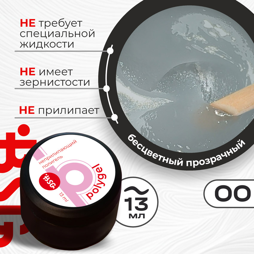 BSG, Полигель неприлипающий №00 Бесцветный прозрачный, 13 мл