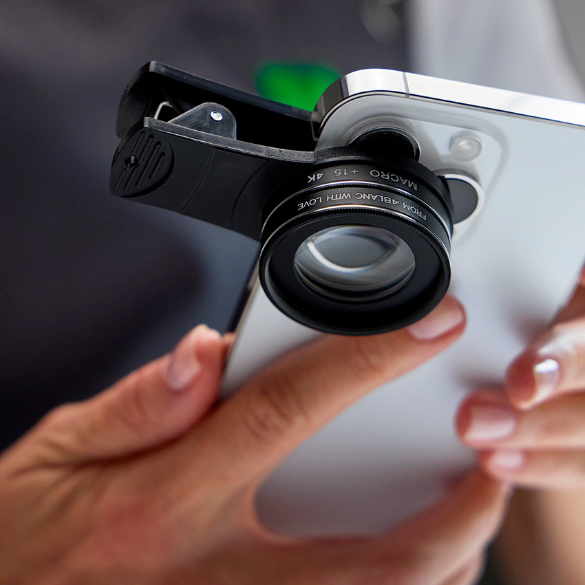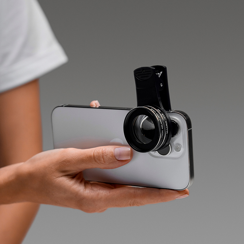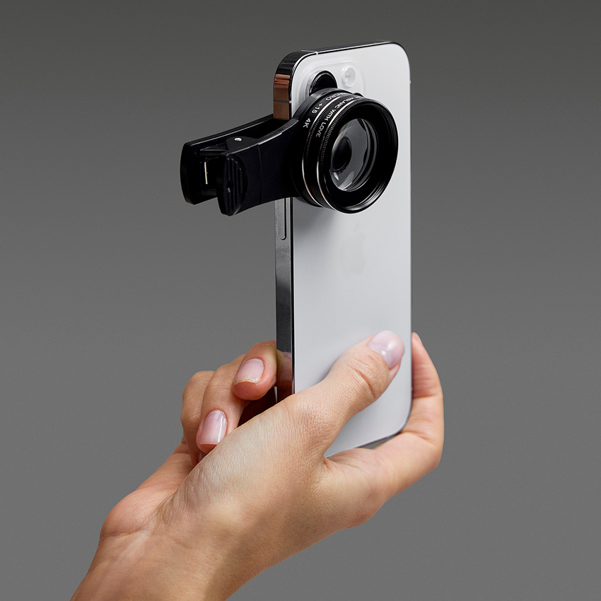 Одним движением закрепите линзу к телефону с помощью зажима. Основание клипсы с резиновыми вставками для защиты вашего телефона от царапин и надёжной фиксации линзы.