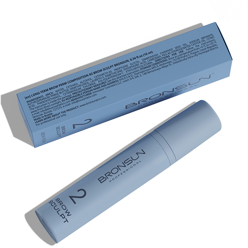 Состав Bronsun Состав для долговременной укладки бровей №2 Brow Sculpt — это второй, ключевой этап процедуры долговременной укладки, который нейтрализует действие первого состава и фиксирует волоски в новом положении, восстанавливая их структуру.