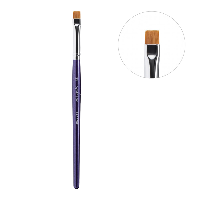 Кисть Creator Synthetic №25 — это профессиональный инструмент для бровистов и визажистов, представляющий собой широкую плоскую кисть с абсолютно прямым (ровным) срезом ворса. Она разработана специально для создания четких графичных линий и работы с плотными текстурами.