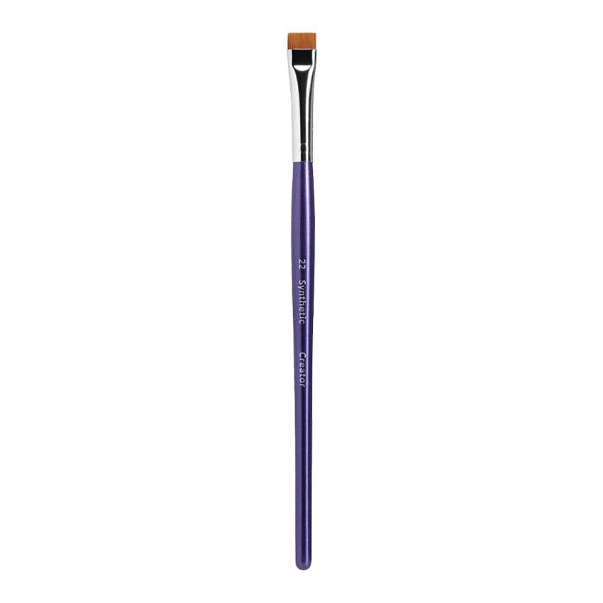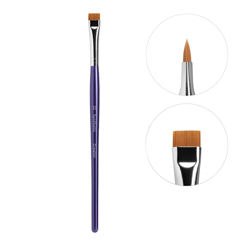 Кисть Creator Synthetic №22 — это профессиональная плоская кисть с ровным прямым срезом, широко востребованная мастерами-бровистами для создания графичных линий и работы с кремовыми текстурами.