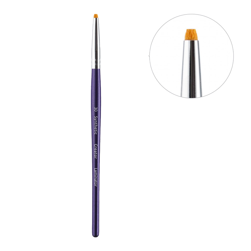 Кисть Creator Synthetic №30 (также известная как «Laminator») — это профессиональный инструмент из синтетического ворса, специально разработанный для мастеров по ламинированию ресниц и оформлению бровей.