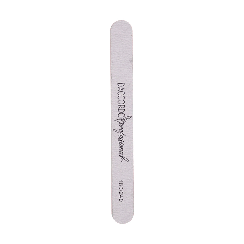 Профессиональная пилка Daccordo Тонкая 180/240 предназначена для работы с натуральными ногтями. Она имеет двухстороннюю абразивность: 180 грит для придания формы крепким ногтям и 240 грит для более мягкой обработки ослабленных ногтей.