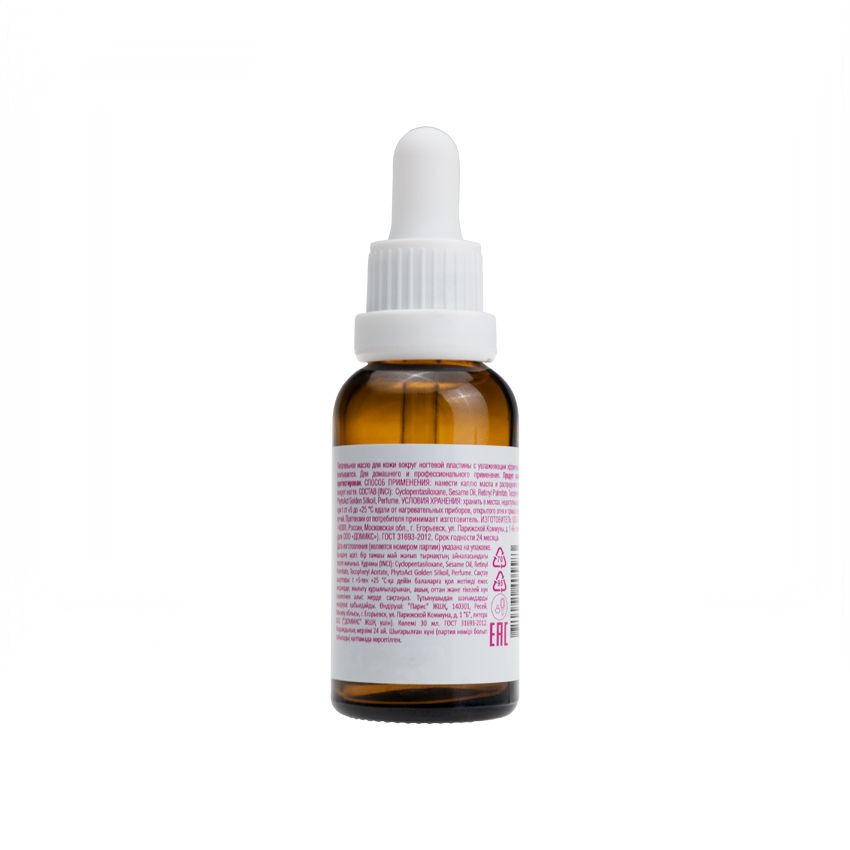 Подчеркивает идеальный маникюр. Питает и увлажняет околоногтевой валик. Масло не видимо после нанесения.