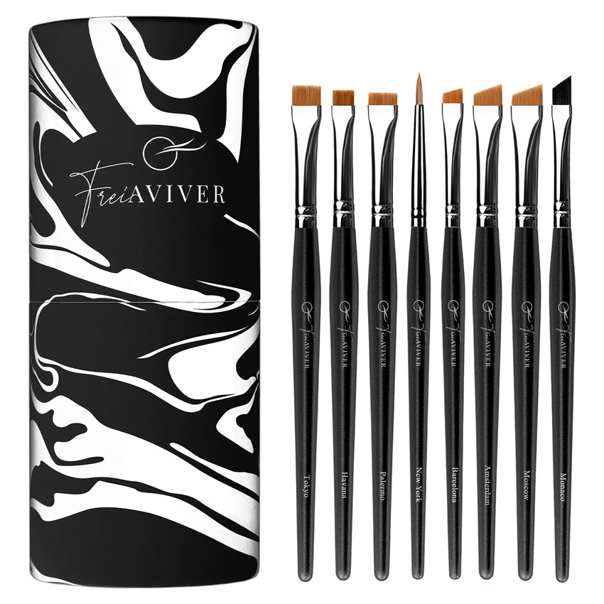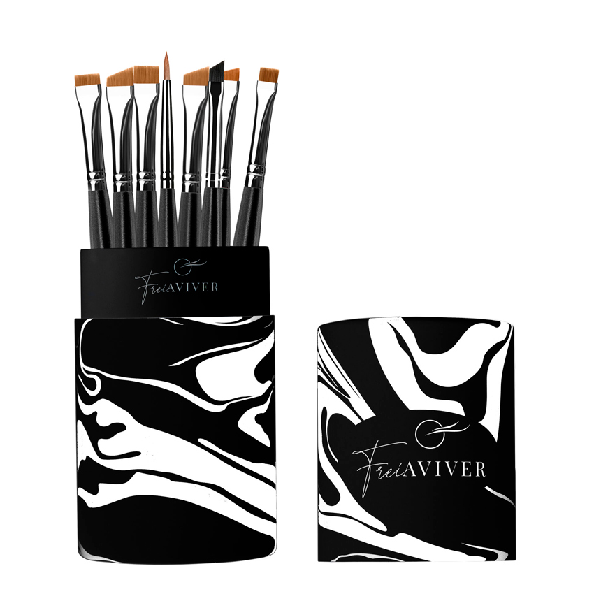 FreiAVIVER, Набор кистей для бровей и ресниц в тубе (черный), 8 шт