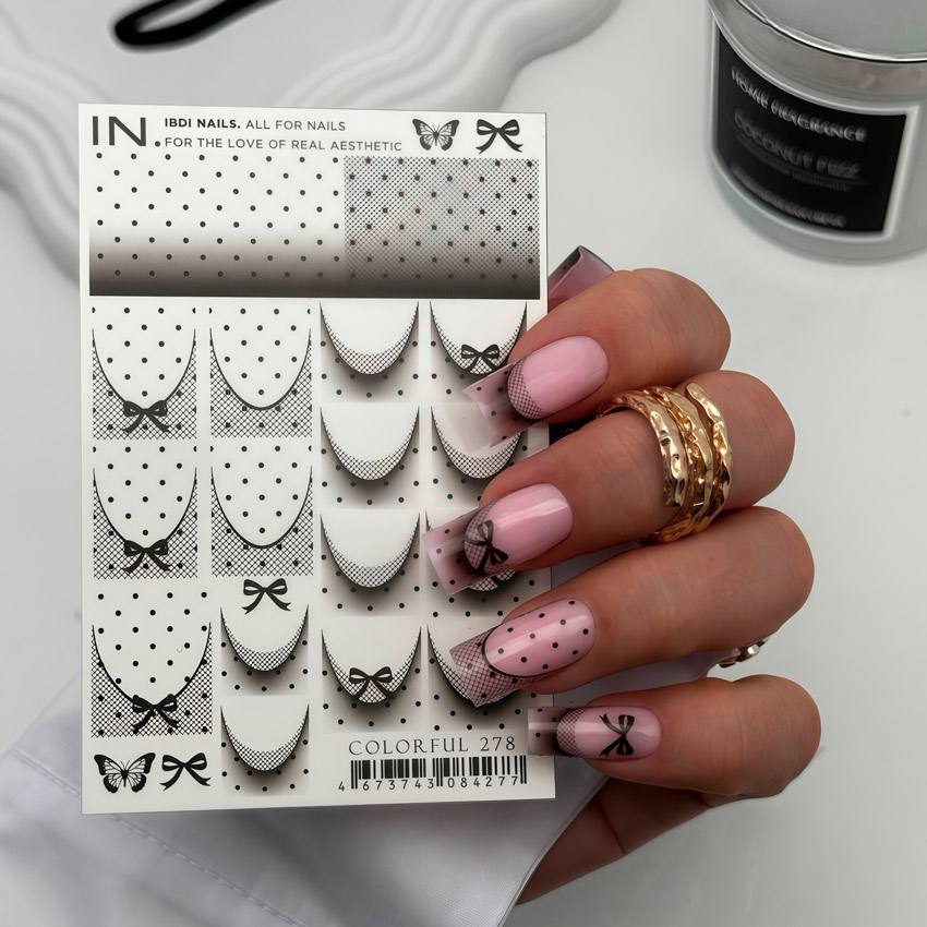 Элегантная графика и безупречные линии — слайдер IBDI NAILS №278 создан для ценителей стильного черного дизайна. Этот артикул из весенней коллекции сочетает в себе утонченность тонких контуров и высокое качество печати, превращая каждый ноготь в произведение современного искусства.