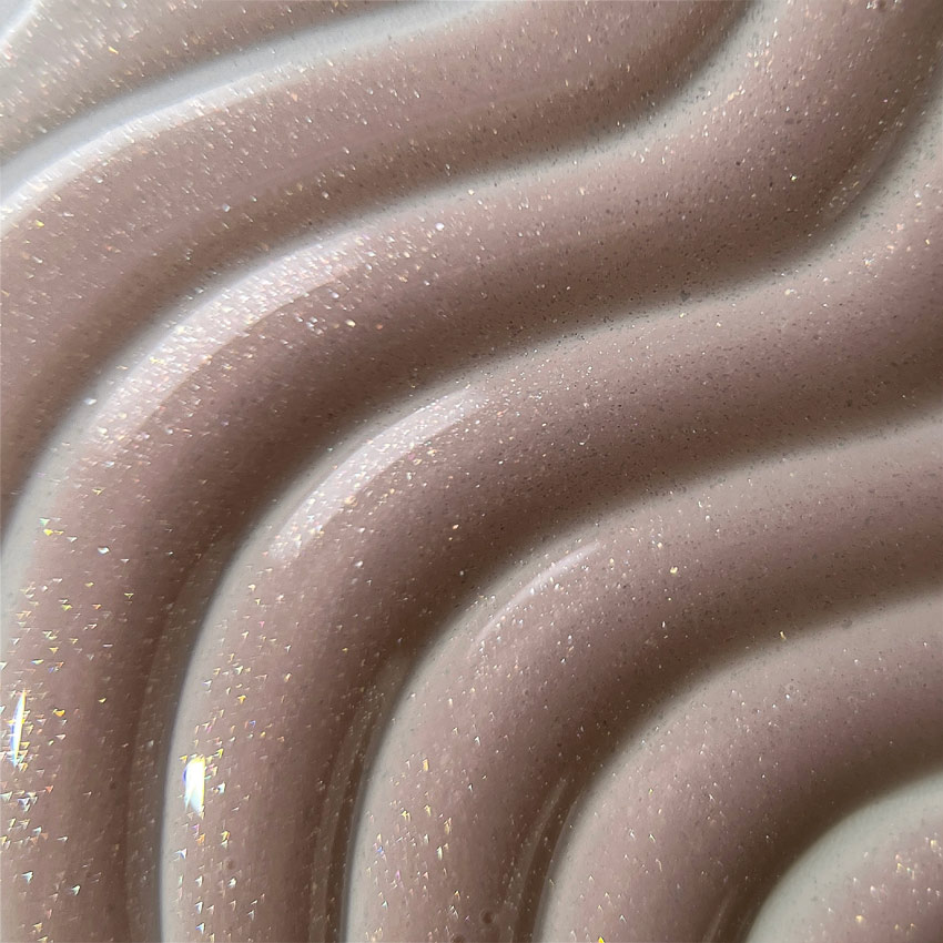 - Элегантный эффект: Мелкий шиммер равномерно распределяется в материале, не оседая на дно, и создает эффект «дорогого» маникюра.