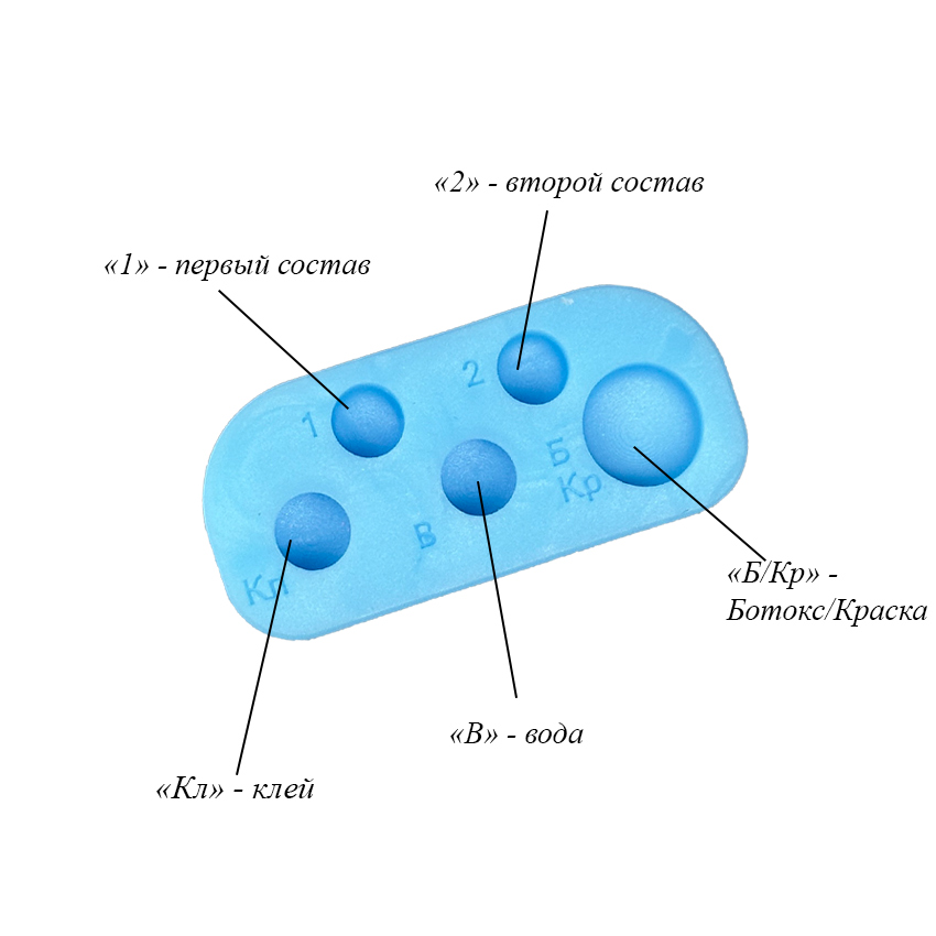 Палитра-дозатор в небесно-голубом цвете изготовлена из силикона премиального качества, гипоаллергенна и удобна в использовании.