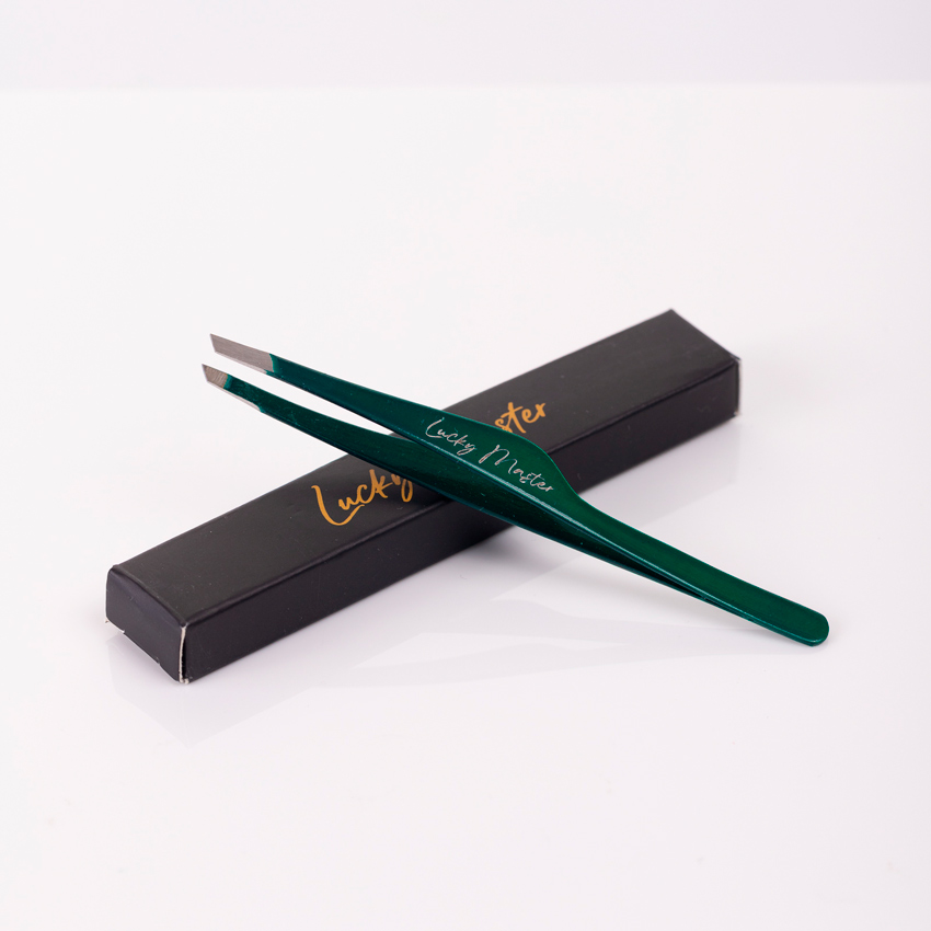 Lucky Master, Пинцет скошенный для бровей с ручной заточкой, Зеленый
