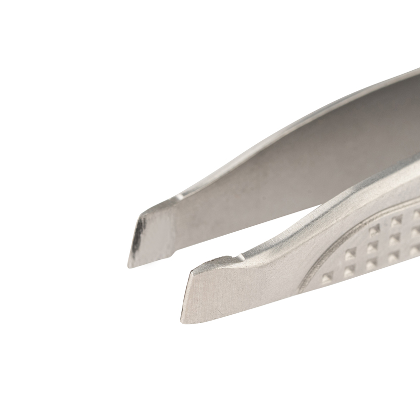 Удобный пинцет фигурной формы прекрасно лежит в руке и очень удобен для коррекции линии бровей как для профессионального, так и для личного использования.