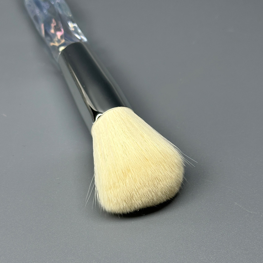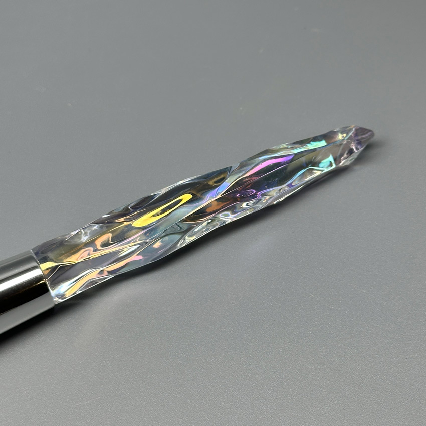 • Дизайн: Щетка отличается изящным стилем с длинной, слегка граненой ручкой, которая удобно ложится в руку мастера. Прозрачный корпус (ручка) создает эстетичный «хрустальный» вид.
