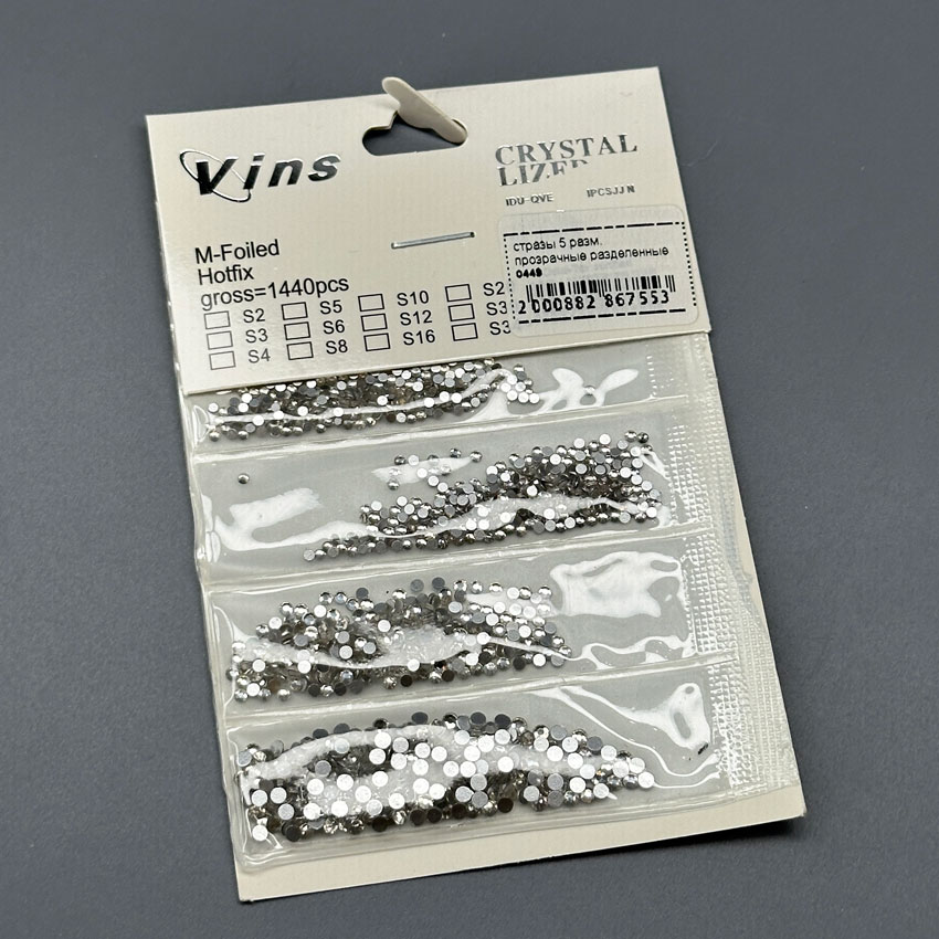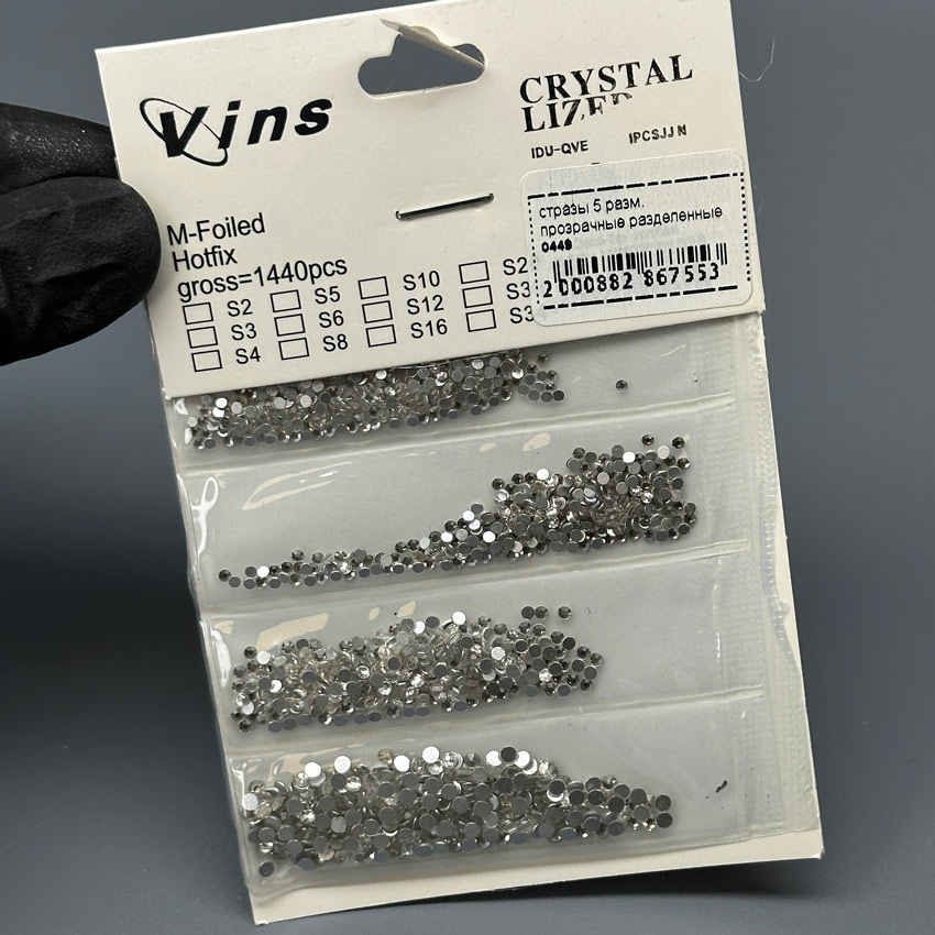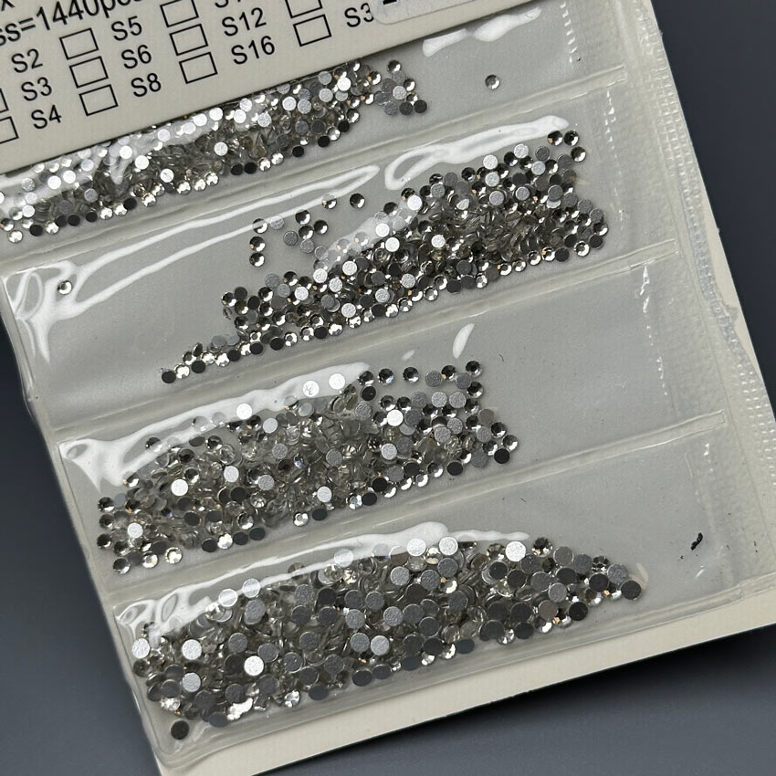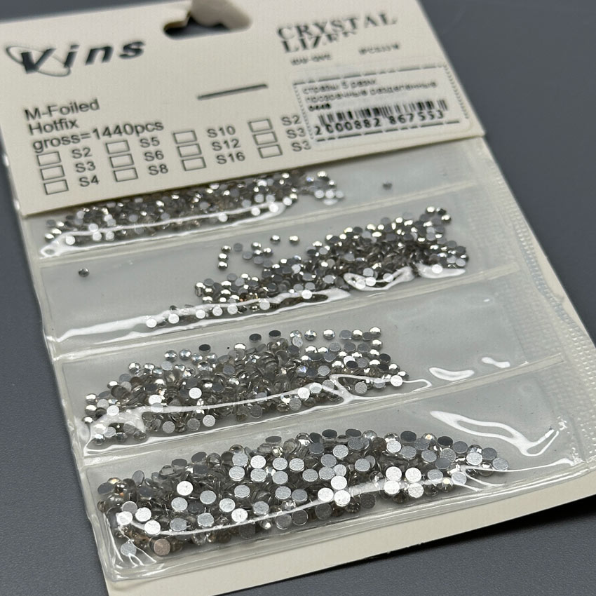 - Типоразмер (Mix): В наборе представлены кристаллы разных диаметров, обычно в диапазоне от ss3 до ss20 (от 1.3 мм до 4.8 мм). Кристаллы разделены по ячейкам или размерам для удобства использования.