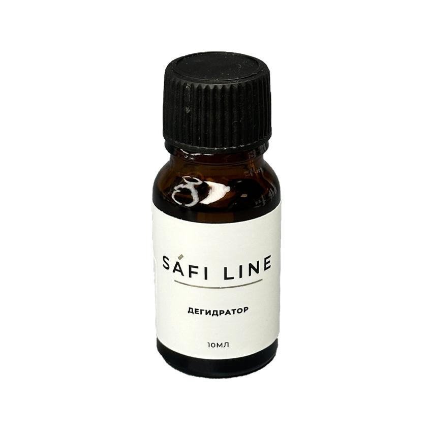 Safi Line, Дегидратор, 10 мл — это профессиональное подготовительное средство, предназначенное для глубокого очищения и подсушивания ногтевой пластины перед нанесением искусственных покрытий.