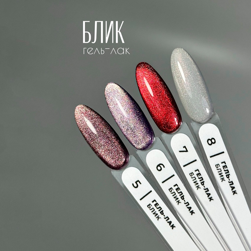 - Эффект: Гель-лак содержит как светоотражающие, так и магнитные частицы, что позволяет создавать уникальные блики и ощущение глубины на ногтях.