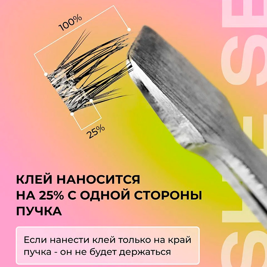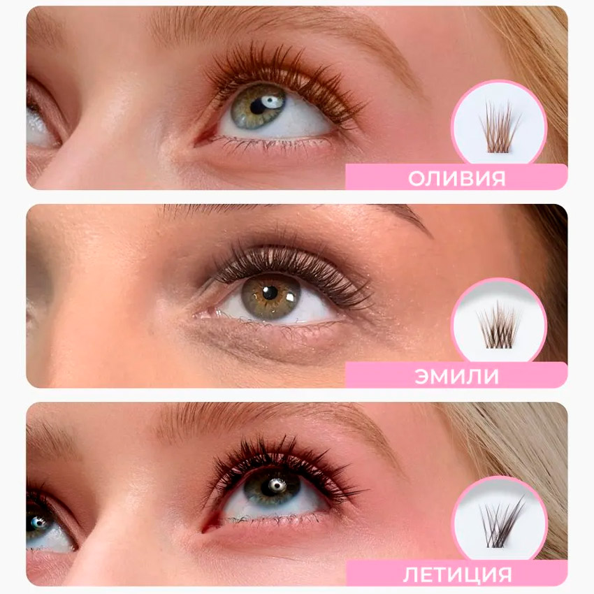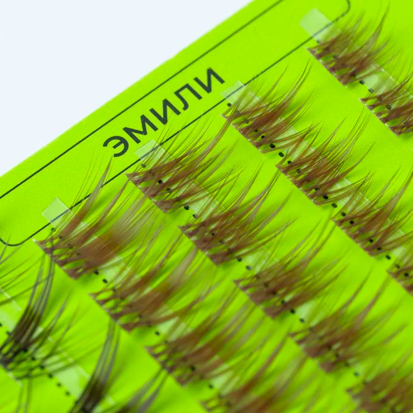 - Длина: Микс от 8 до 14 мм. Позволяет моделировать различные эффекты — от натурального до более выразительного («лисий» или «кукольный» взгляд).