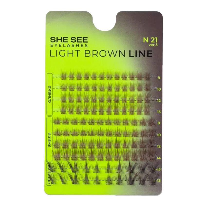 Накладные ресницы SHE SEE №21.3 — это набор пучковых ресниц в светло-коричневом цвете, предназначенный для создания естественного образа.
