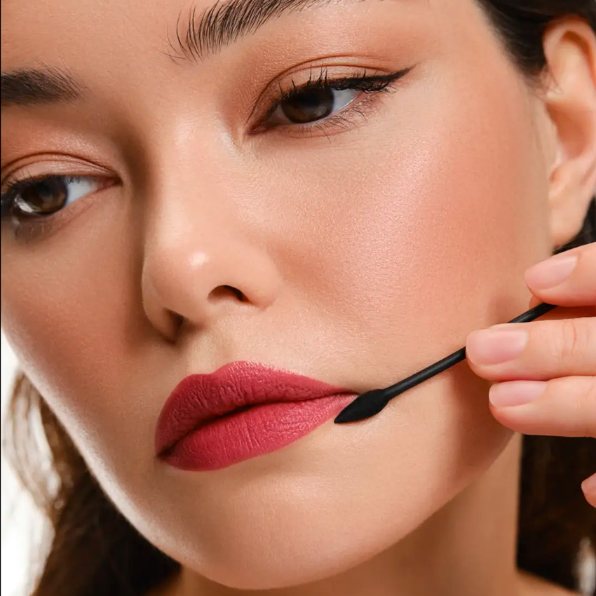 Заостренный ватный аппликатор позволяет легко подчищать форму бровей и точечно корректировать макияж.
