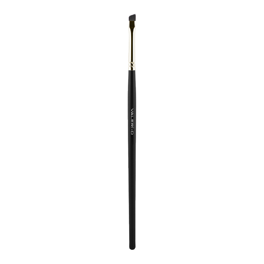 Кисть для бровей Valeri-D 5M-34 — это плоская, скошенная кисть, изготовленная из черного нейлона. Она предназначена для создания четких форм и работы с различными плотными текстурами.