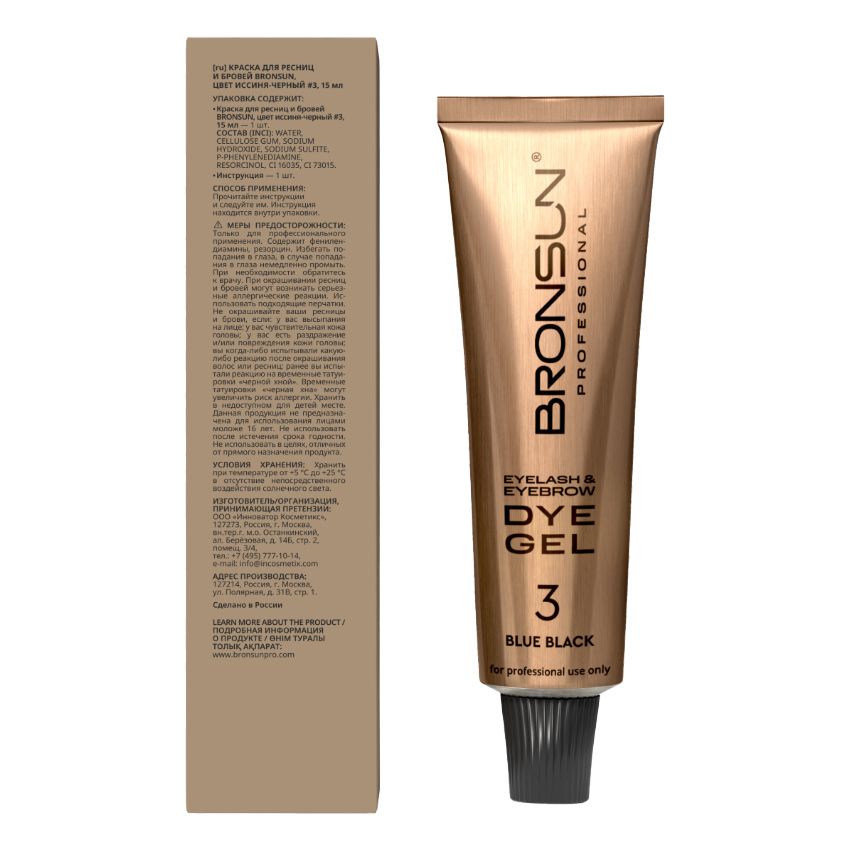 Bronsun, Марка Краска для ресниц и бровей №3 Иссиня-черная, 15 мл