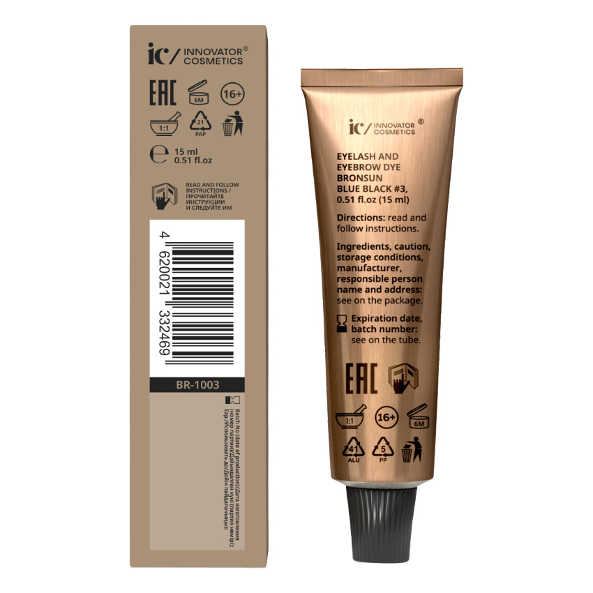 Bronsun, Краска для ресниц и бровей №3 Иссиня-черная, 15 мл