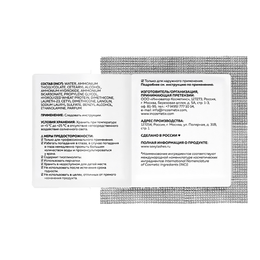 SEXY LAMINATION, Саше с составом №1 Volume Lift для ламинирования, 2 мл