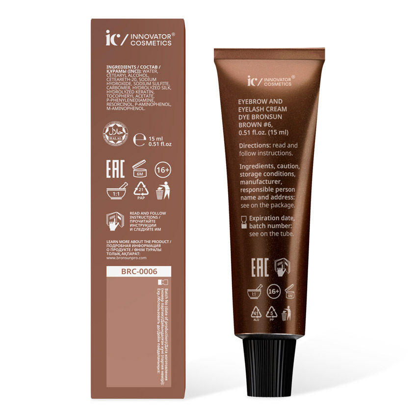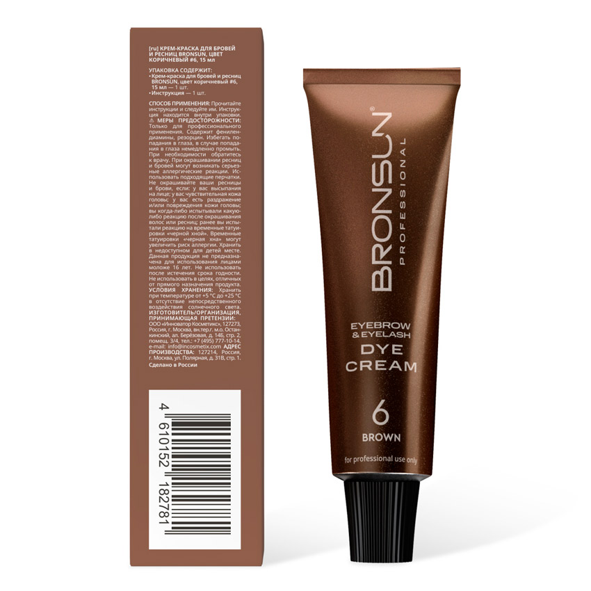 Bronsun, Крем-краска для ресниц и бровей №6 Коричневая, 15 мл