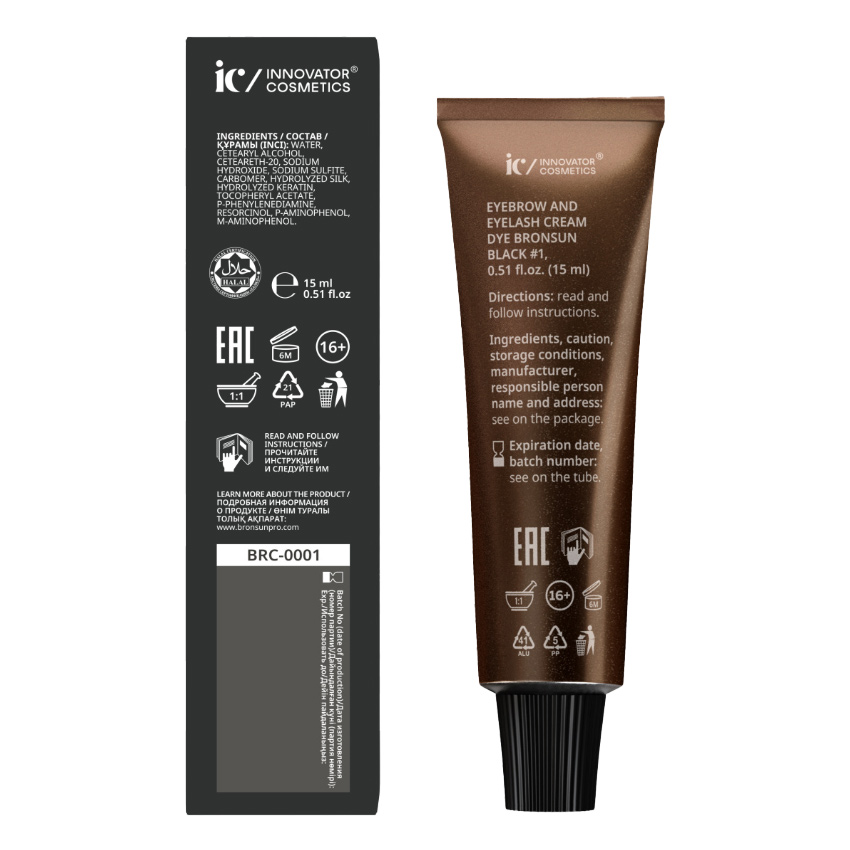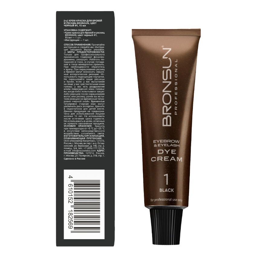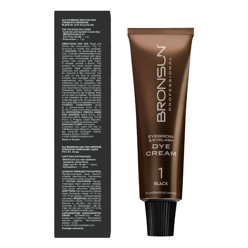 Bronsun, Крем-краска для ресниц и бровей №1 Черная, 15 мл