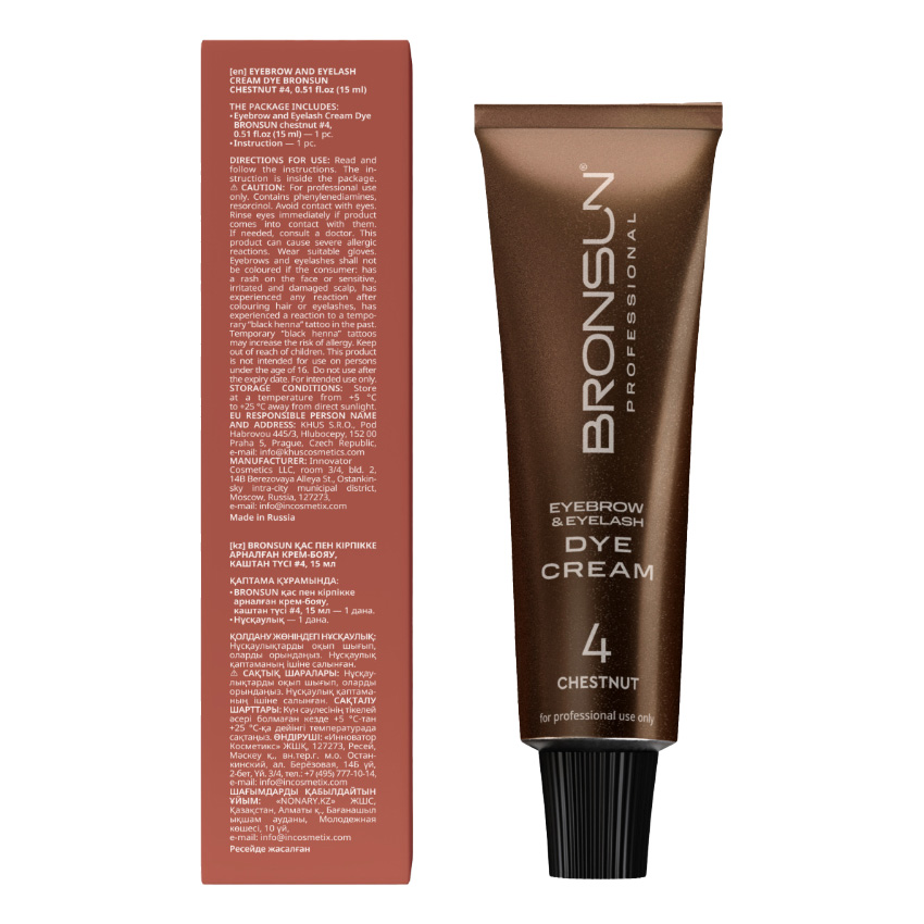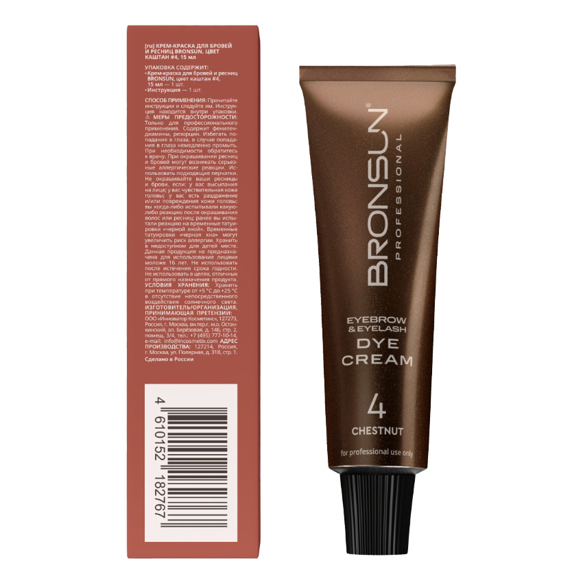 Bronsun, Крем-краска для ресниц и бровей №4 Каштан, 15 мл