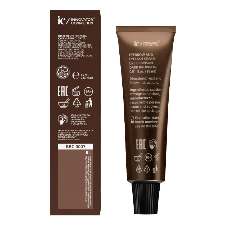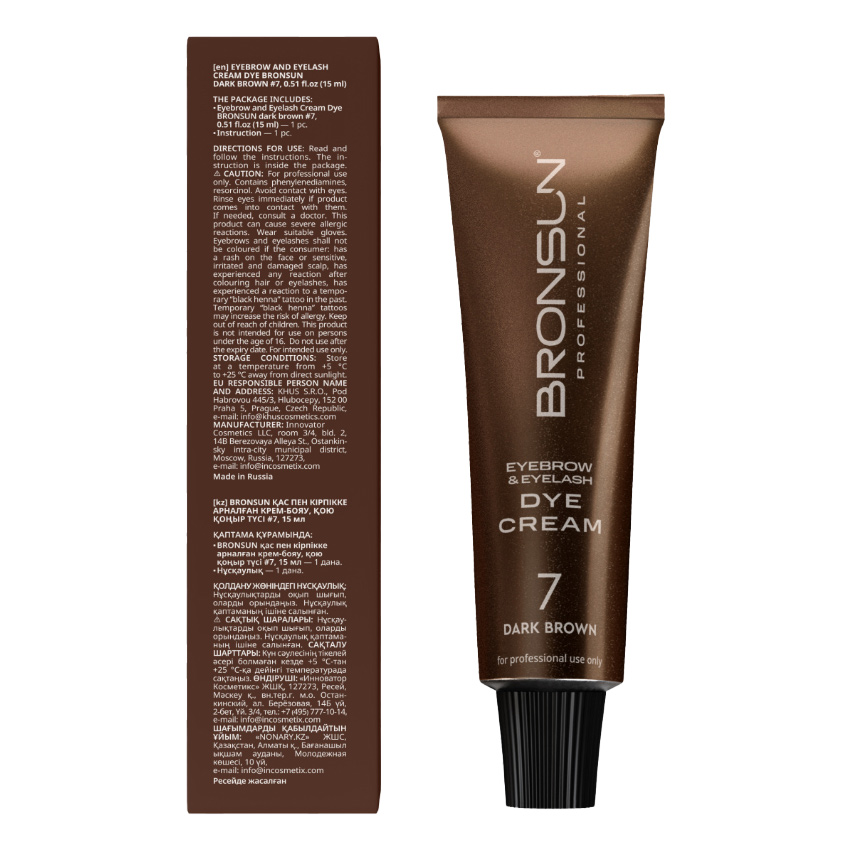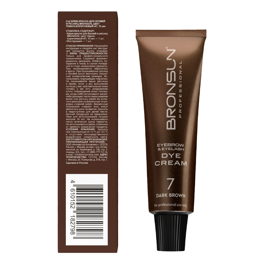 Bronsun, Крем-краска для ресниц и бровей №7 Темно-коричневая, 15 мл