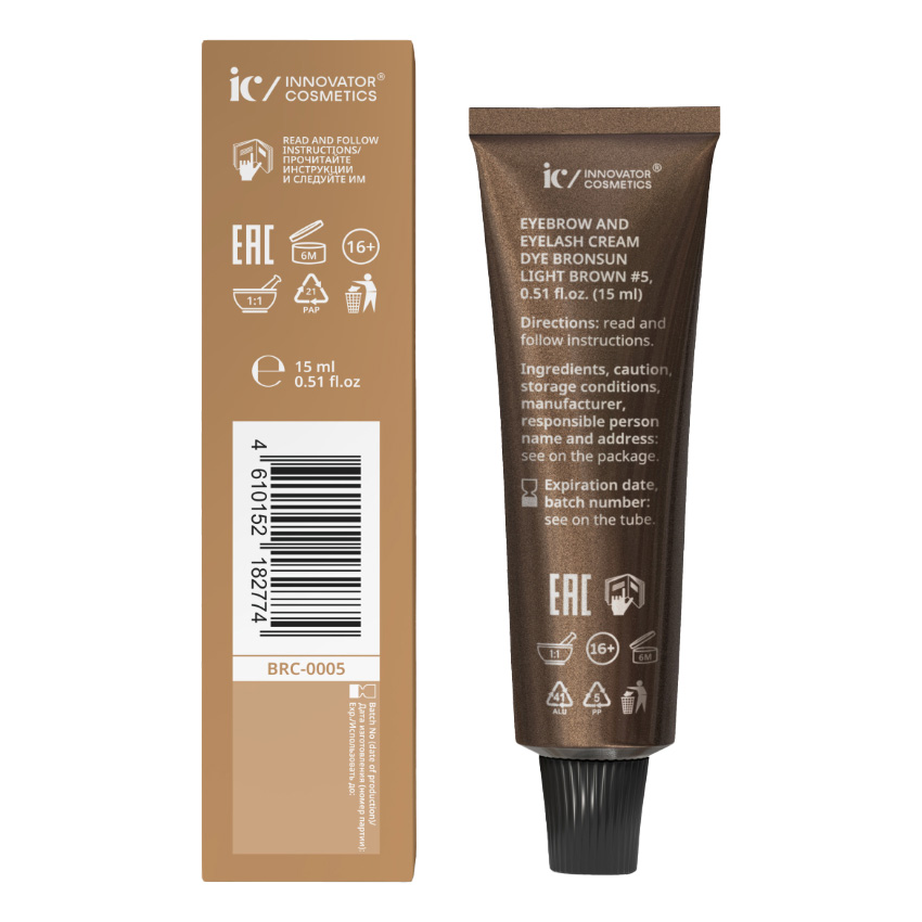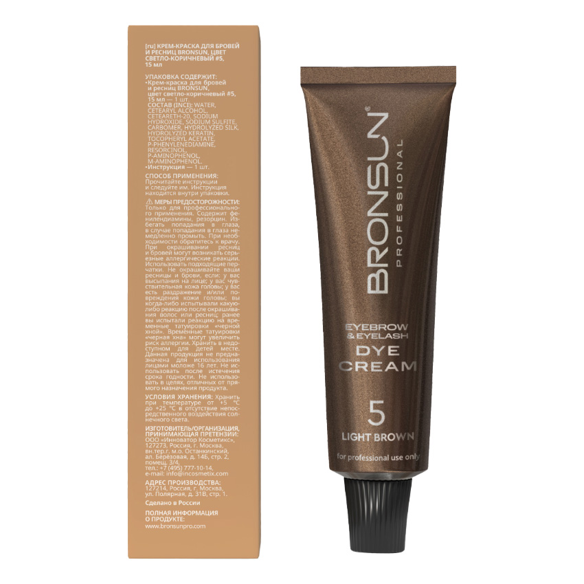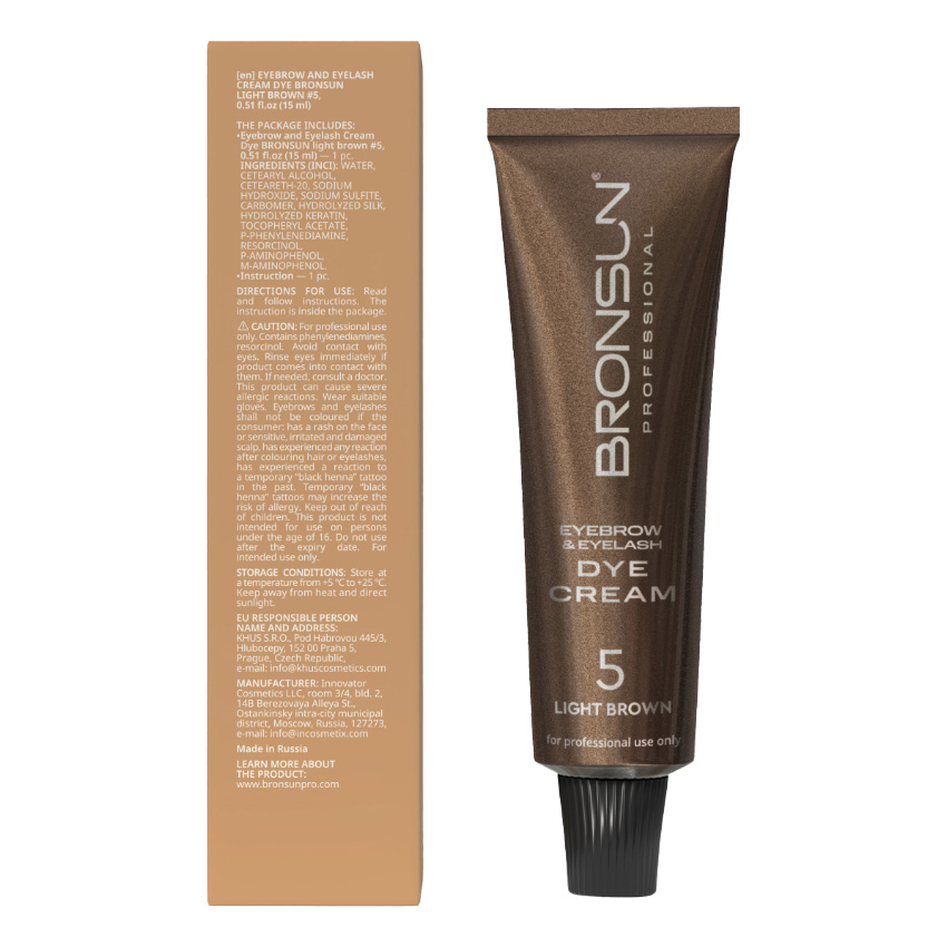 Bronsun, Крем-краска для ресниц и бровей №5 Светло-коричневая, 15 мл