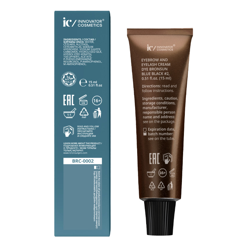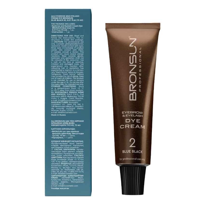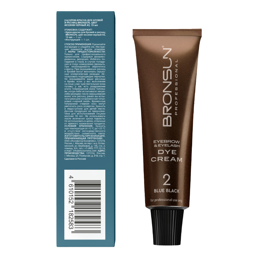 Bronsun, Крем-краска для ресниц и бровей №2 Иссиня-черная, 15 мл