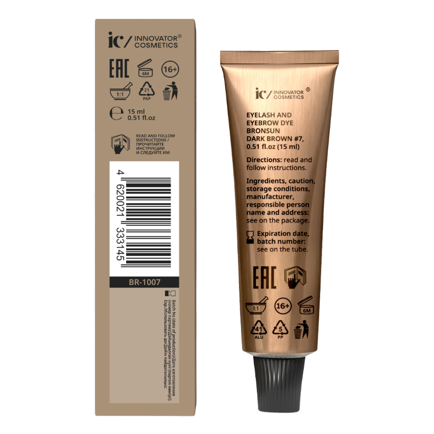 Bronsun, Краска для ресниц и бровей №7 Темно-коричневая, 15 мл