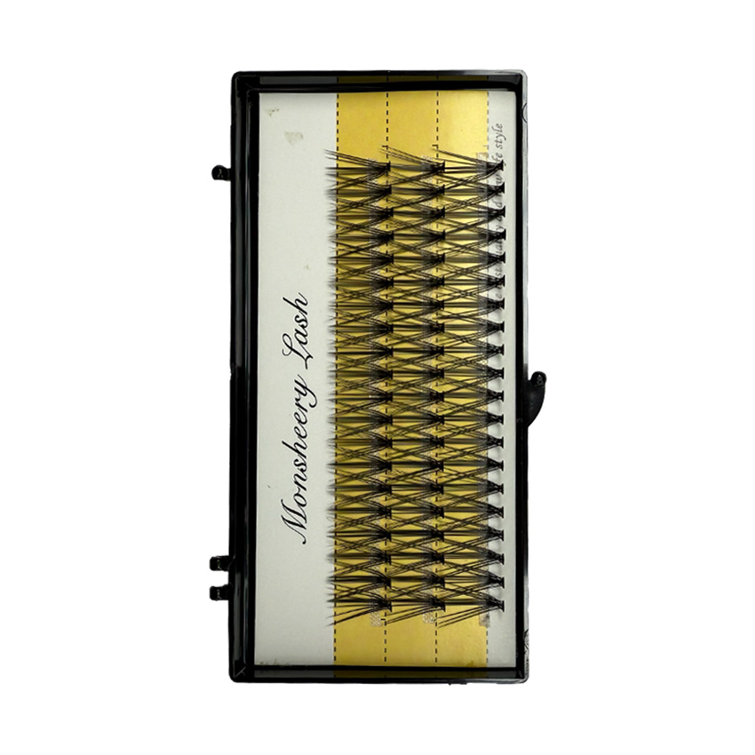С помощью пучков можно регулировать нужные вам объём и длину, что сделает ваш взгляд более выразительным. Набор из ресниц-пучков выразительно дополнят любой макияж глаз.