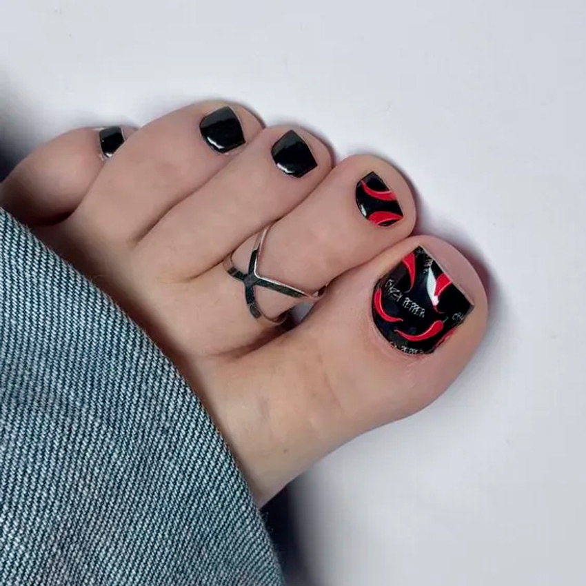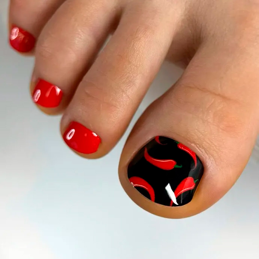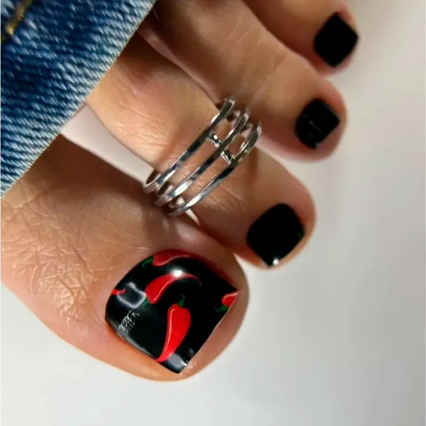 Ami Nails, Пленки для педикюра №Т724 Перцы+Красно-Черный однотон