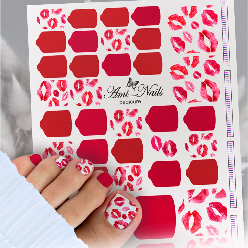 Ami Nails, Пленки для педикюра №Т725 Поцелуи+Красный однотон
