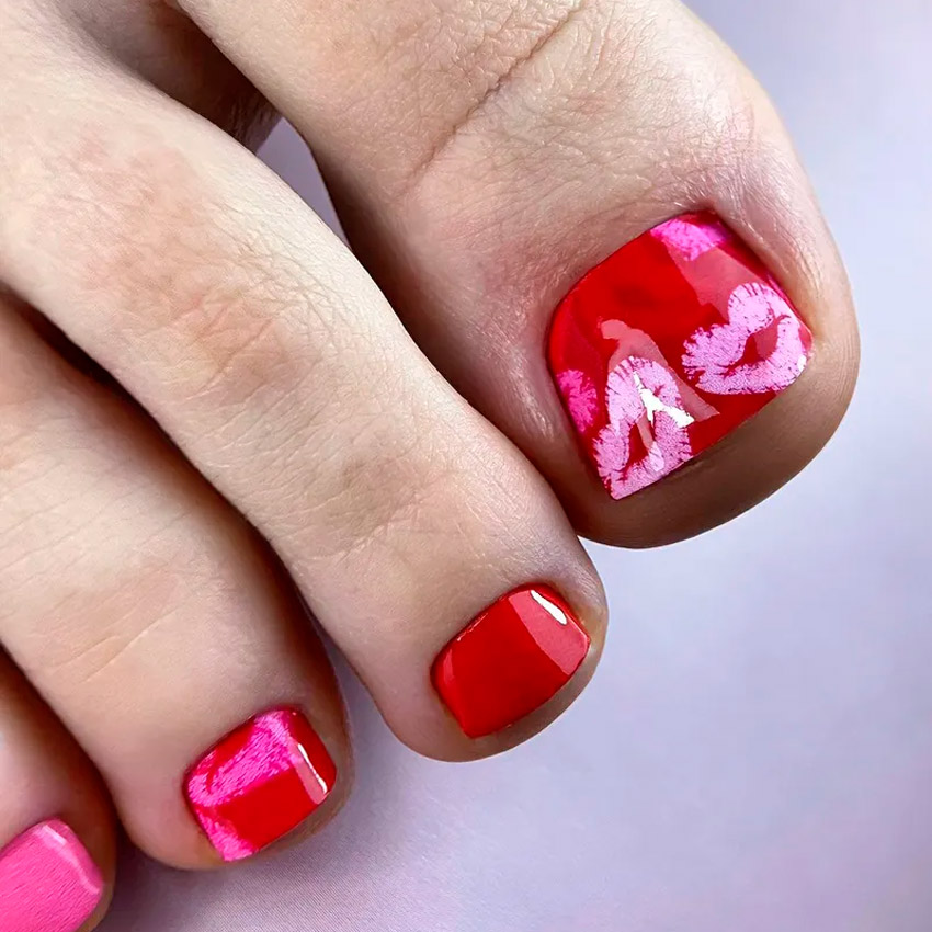 Ami Nails, Пленки для педикюра №Т726 Поцелуи Сердечки+Красно-Розовый однотон