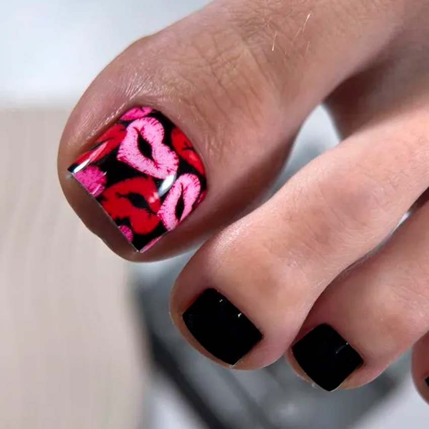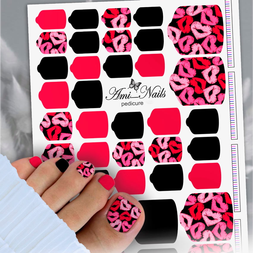 Ami Nails, Пленки для педикюра №Т727 Поцелуи Сердечки+Красно-Черный однотон