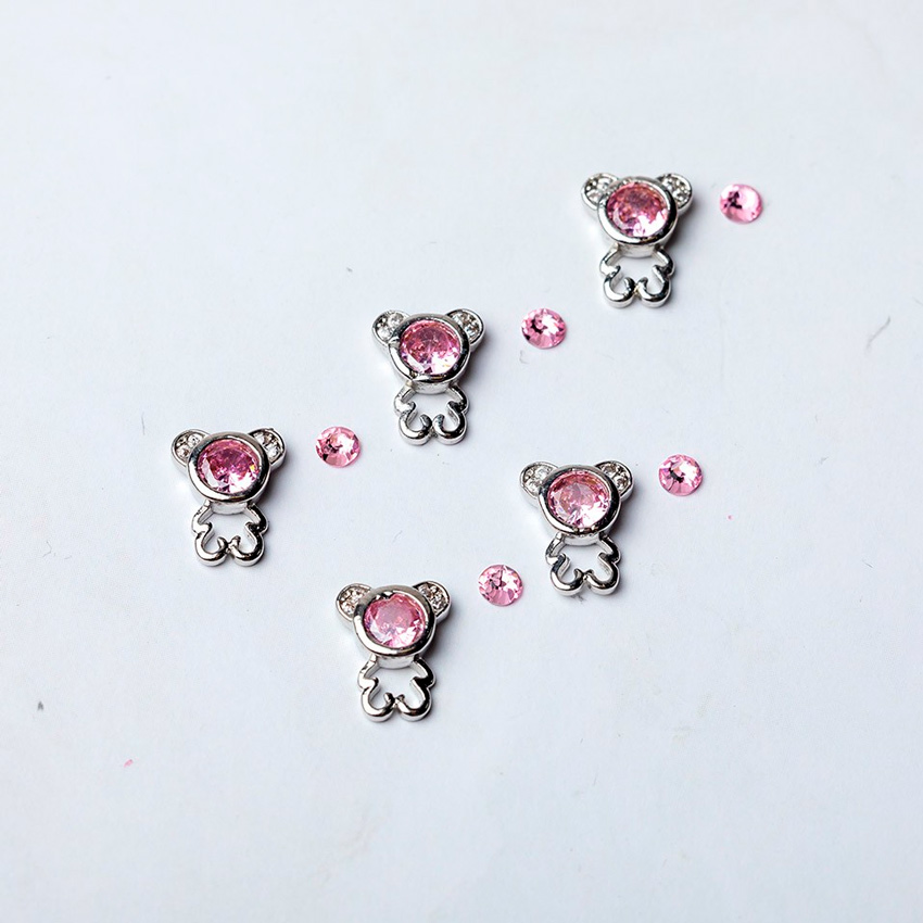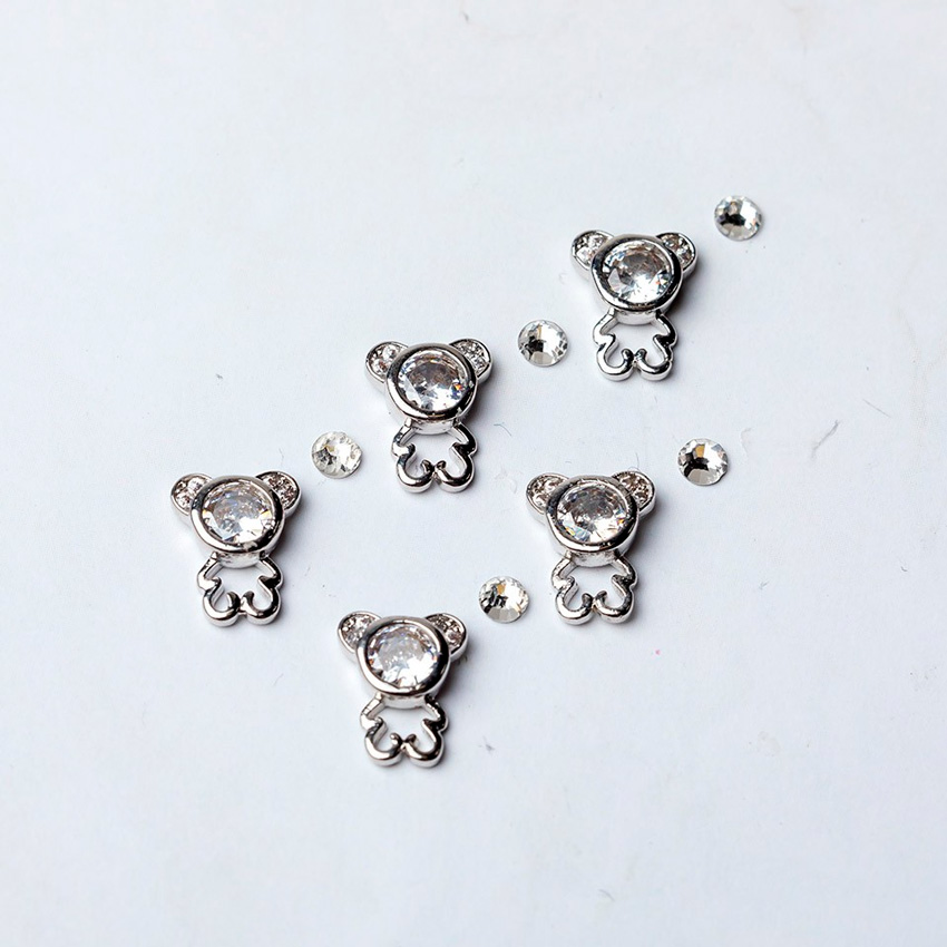 Blesk, Украшение для ногтей "Мишки" №07 (металл) 7*9мм+Стразы SS10 (стеклянные), 5+5 шт