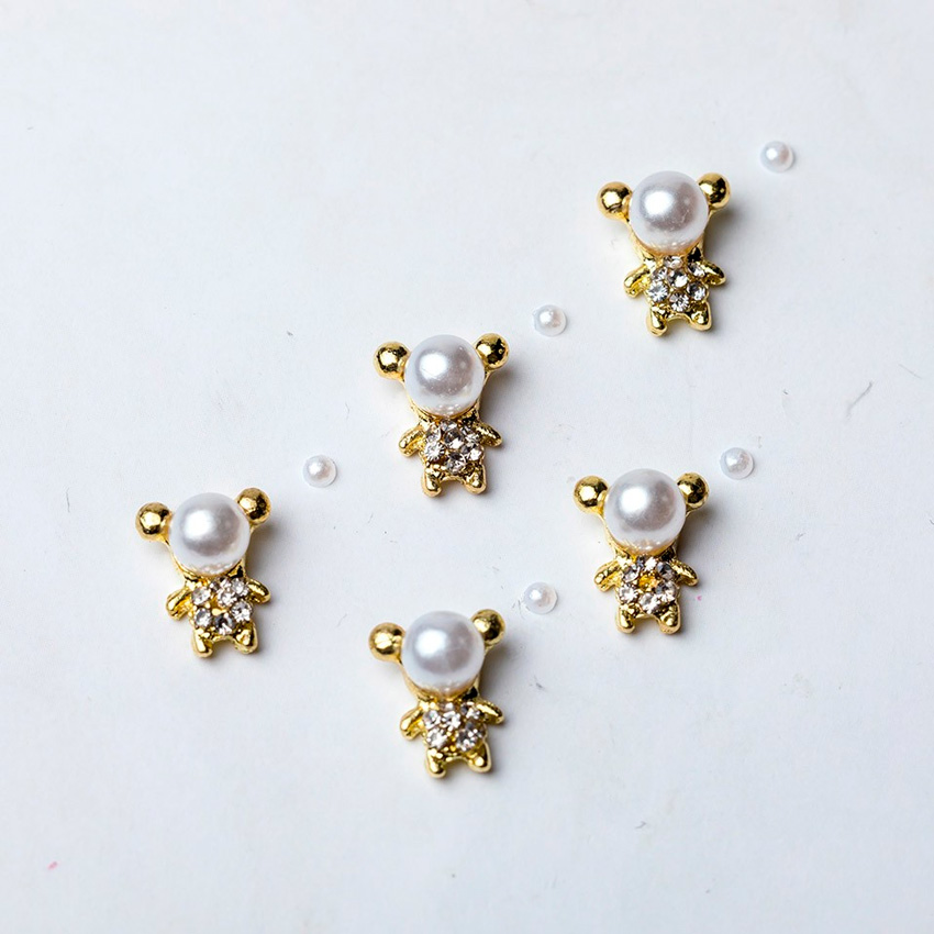 Blesk, Украшение для ногтей "Мишки" №11 (металл) 8*10мм+Жемчуг 2мм, 5+5 шт