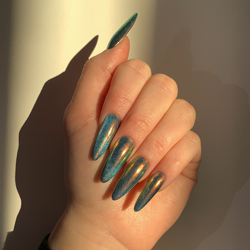Mila Nails, Втирка прессованная металлик, изумруд/серебро 5036