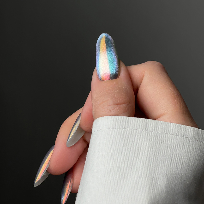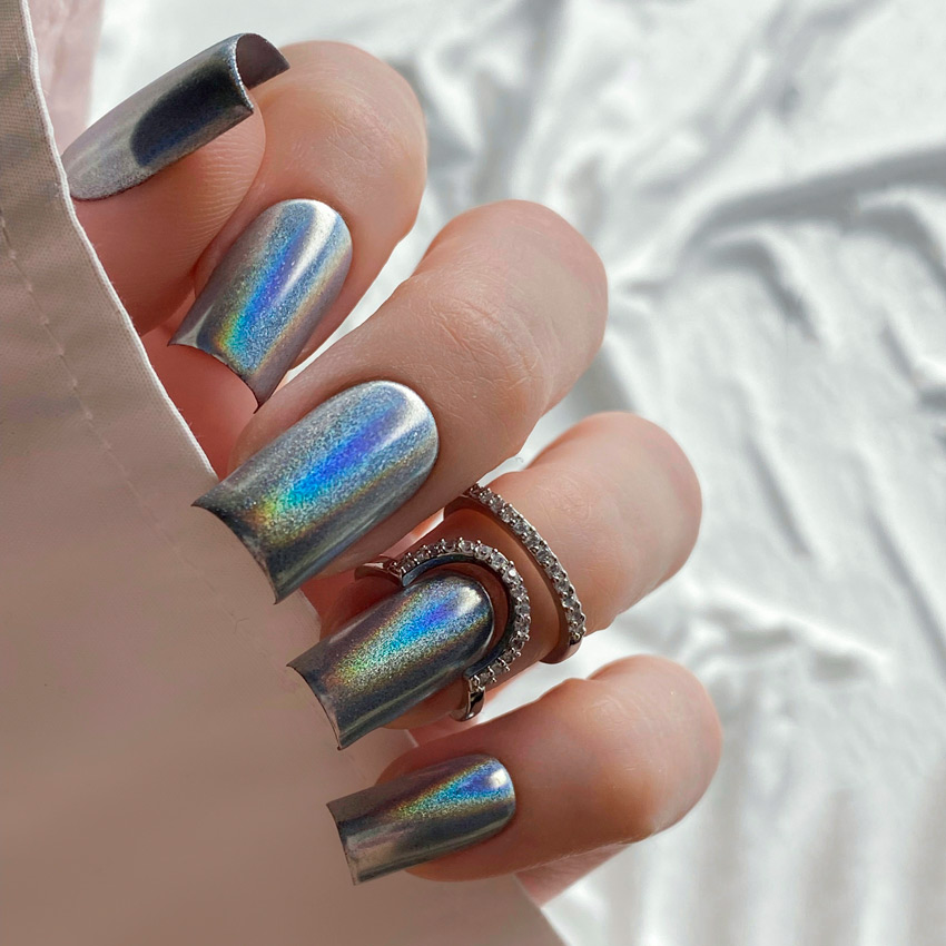 Mila Nails, Втирка прессованная металлик, огненный/серебро 5034