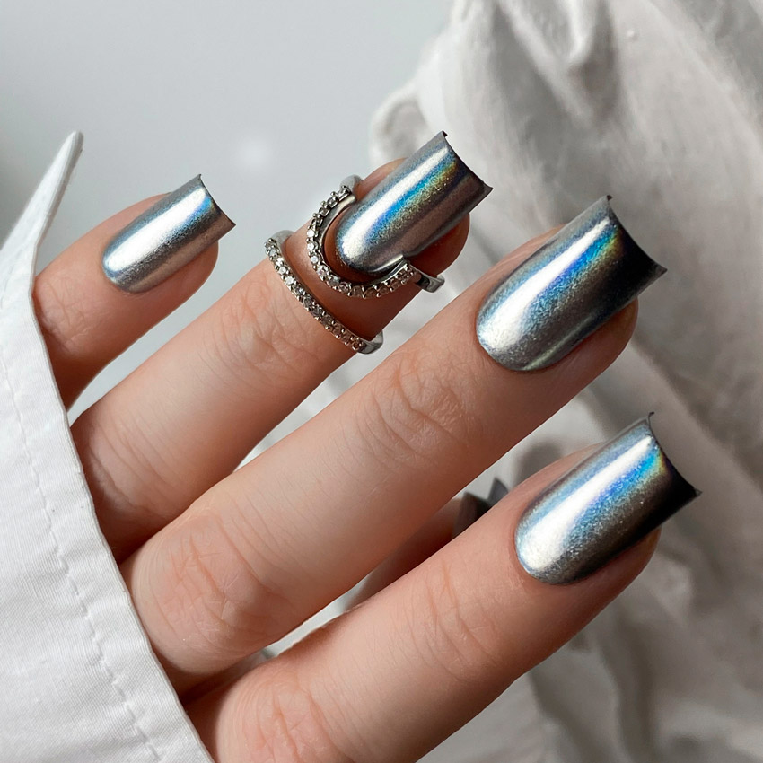 Mila Nails, Втирка прессованная металлик, голубая/серебро 5031
