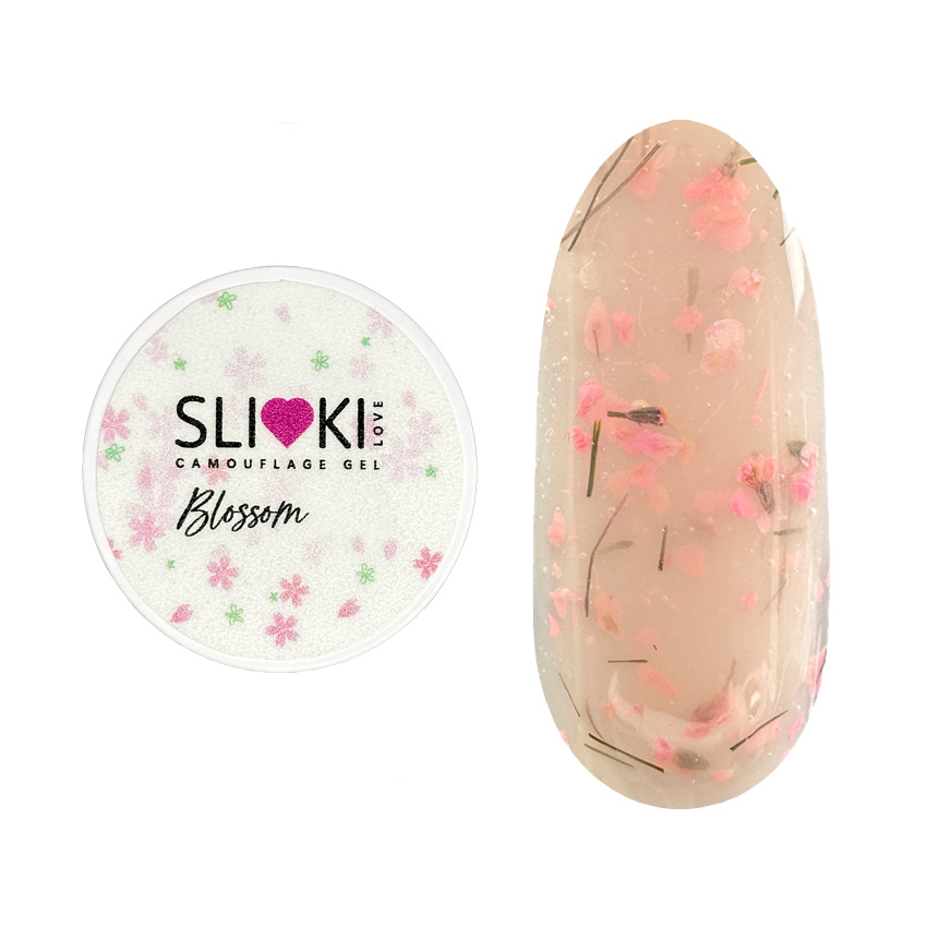 SlivkiLove, Гель Моделирующий Blossom №02 бежевый с сухоцветами фуксия, 15 мл