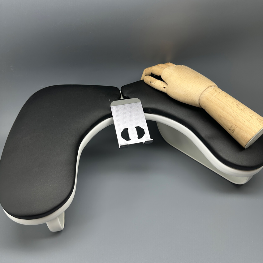 Черная маникюрная подставка для двух рук с держателем для телефона – это эргономичное приспособление, предназначенное для обеспечения комфорта клиента и мастера во время маникюра, позволяющее клиенту удобно расположить руки и одновременно пользоваться телефоном.